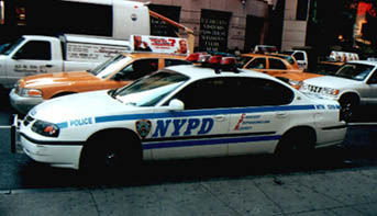 Der Time Square ist bekannt wegen seiner Leuchtreklamen und dort befindet sich auch das N.Y.P.D.