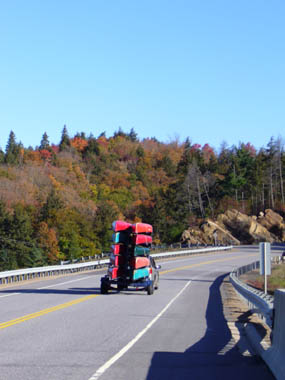 (Strasse durch den Algonquin Park- Auto mit Kanus beladen)
