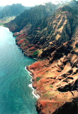 Der Großteil der Küste wird von ursprünglichen, feinen Sandstränden mit Korallenriffen umsäumt. Am eindrucksvollsten ist die entlegene "Na Pali" Küste.